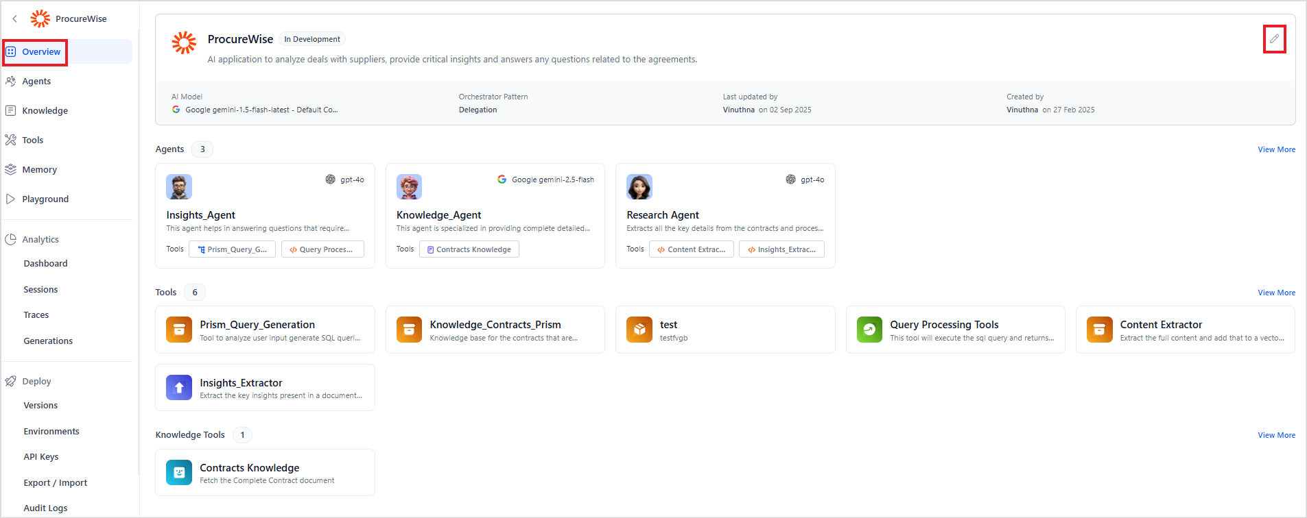 - AI Model - AI model to be used by agents and supervisors, if any. Refer to this for the list of supported models. Use the gear icon to configure the AI Model settings. Configuration properties vary depending on the selected model. Refer to the model’s official documentation for details.