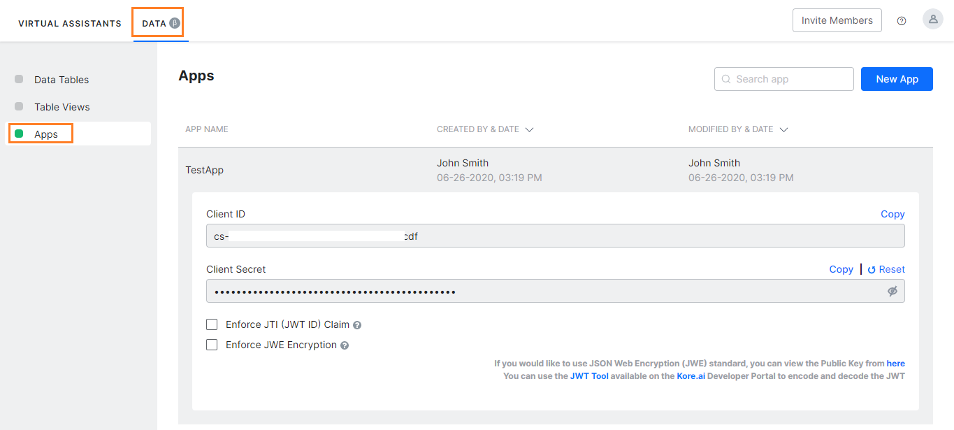 You can define apps to securely access the data from data tables and data views. These apps can be used for: