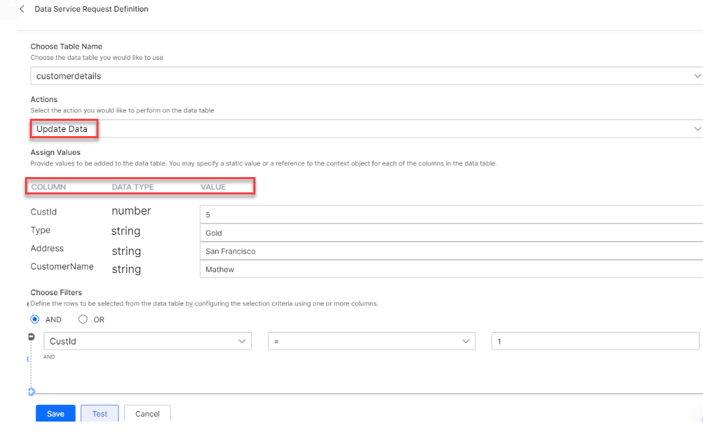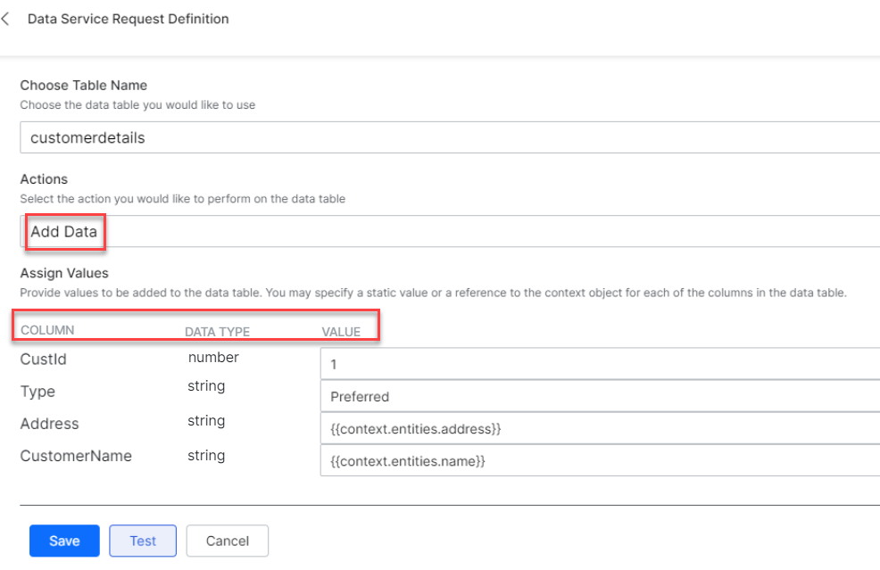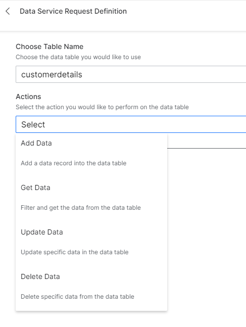 This section deals with the manipulation aspect using the Service Node within a Dialog Task of your AI Agent. For details on the data definition, refer here.