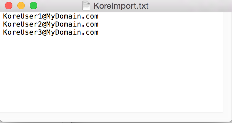 john.doe@example.comjane.doe@example.com - Save the bulk invite file as a '.txt' file, for example, Kore.aiImport.txt.
