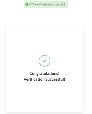 After you enter the correct OTP and the verification is successful, the following verification success message appears.