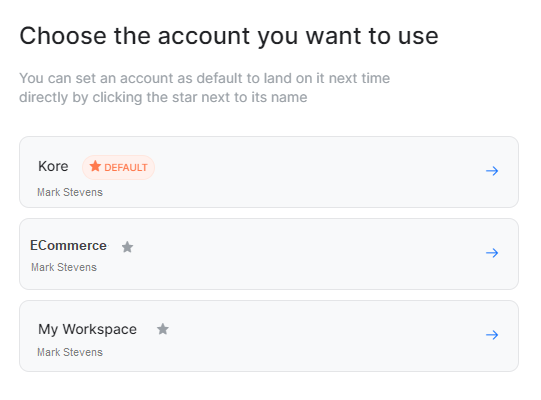 When you click this option, the system redirects to the account selection page where you can select the same/different account from the list to login.