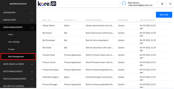 On the Admin Console, click User Management > Role Management on the left menu.