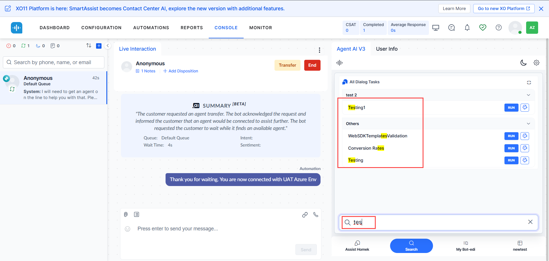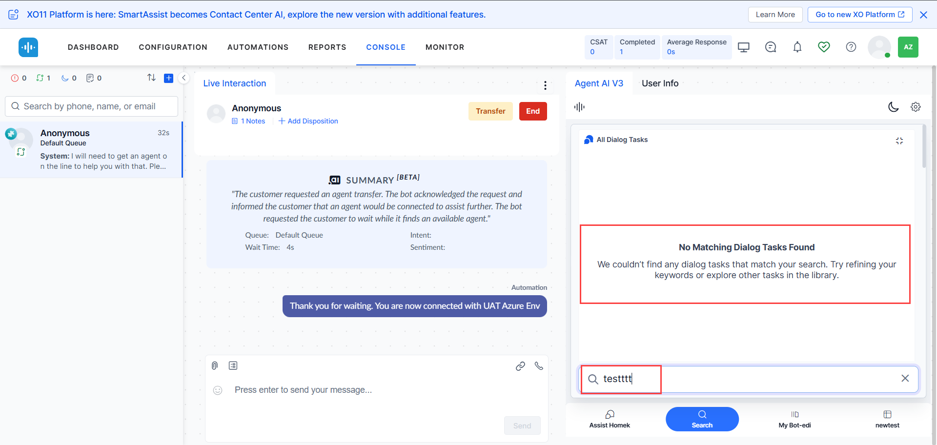 Agents can now click the Generate Summary button in the Assist tab to generate on-demand conversation summaries at any point during a conversation, up to two times per agent, per conversation. This functionality is available even during agent transfers, allowing the receiving agent to regenerate a new summary and view the previous summary with timestamps. Agents can also provide feedback for these summaries.