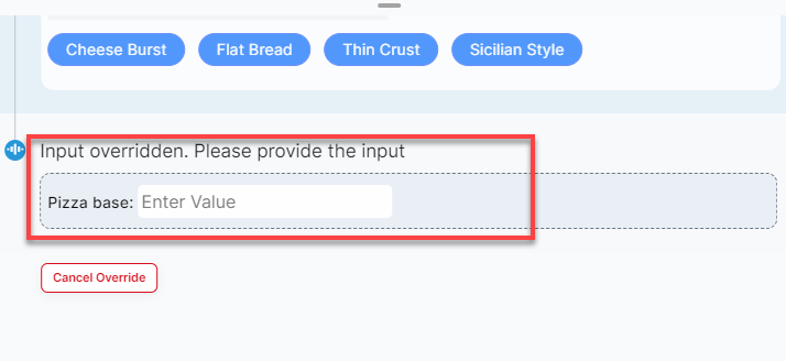 - Click “Override” to discard the Agentic prompt and enter your own response manually.