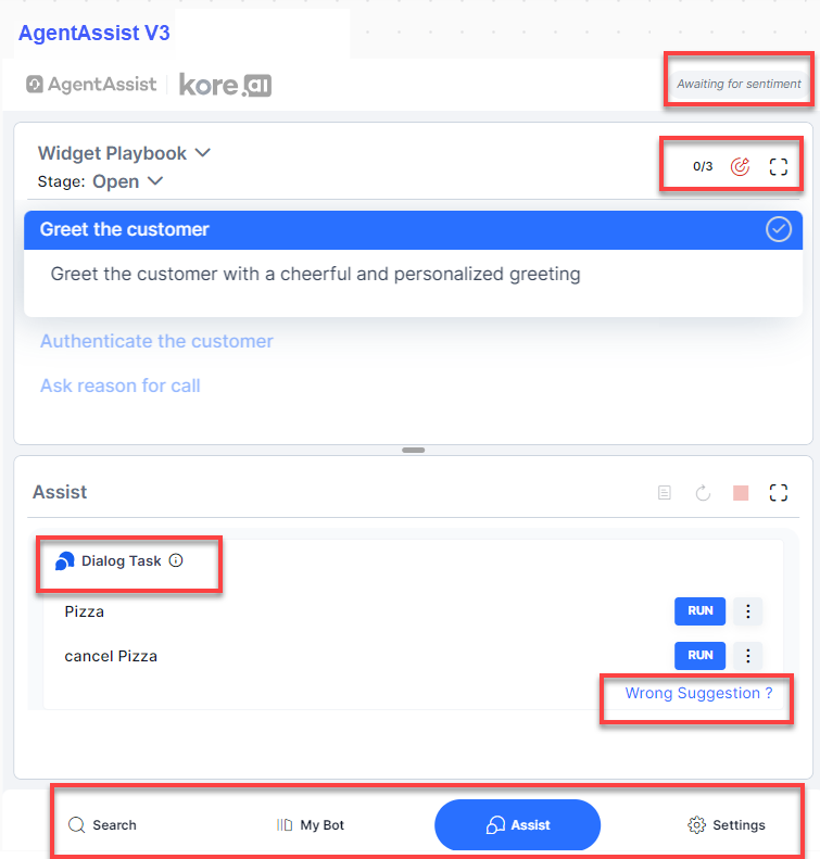 - Additional Information in V3: The Dialog Task section in V3 has additional information–Wrong Suggestions? feedback button.