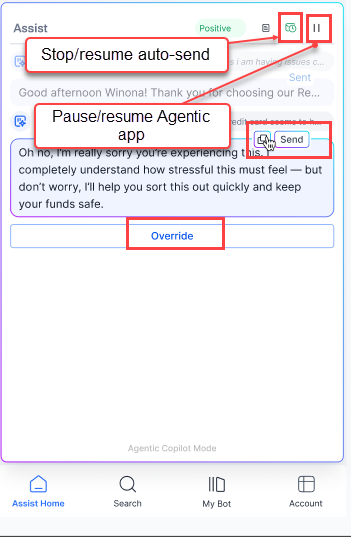 - Agentic Copilot: The Agentic Copilot runs end-to-end conversations autonomously with Agents supervising the conversations. Agents can cancel, override, or edit the Agentic conversations, as needed.