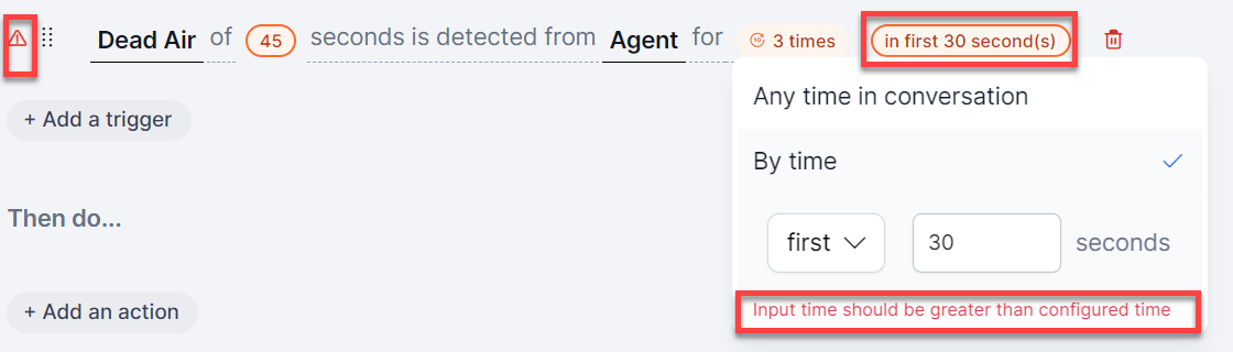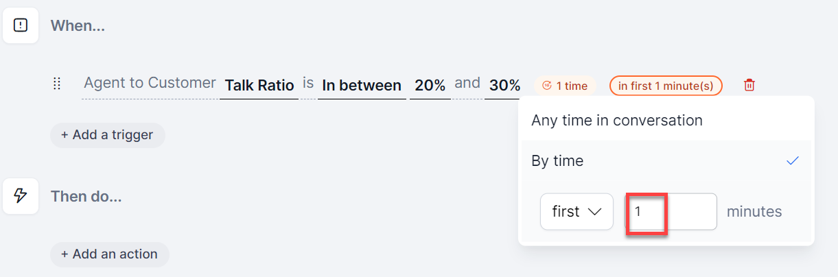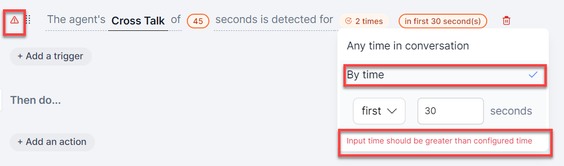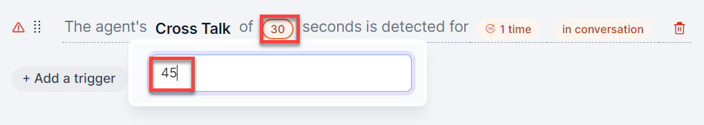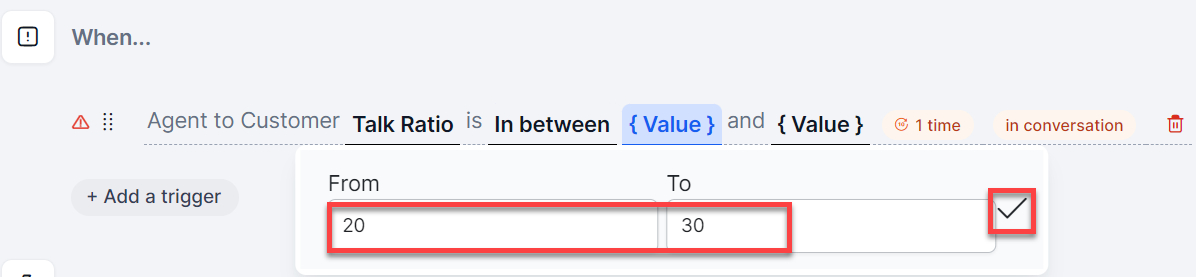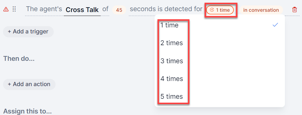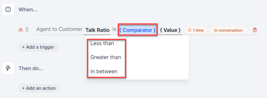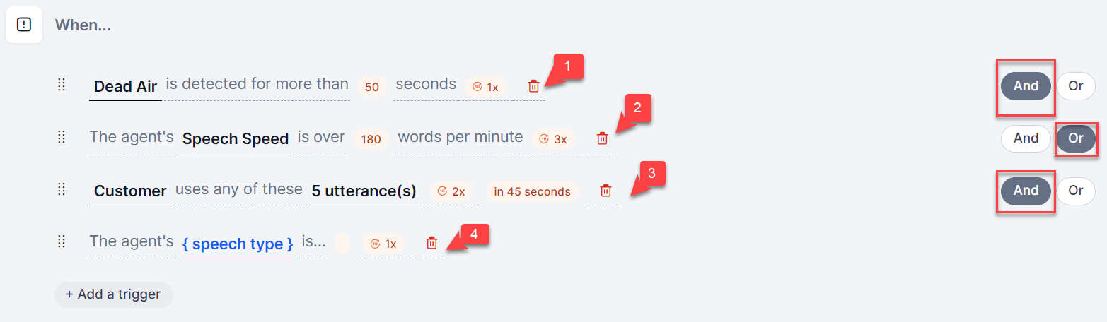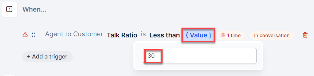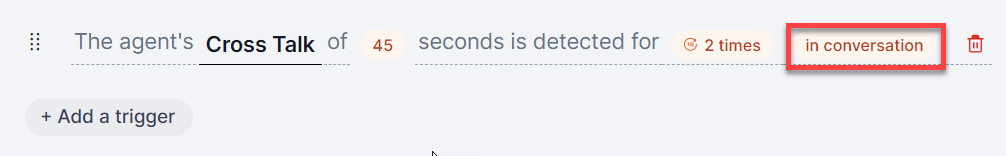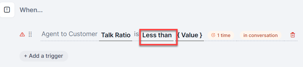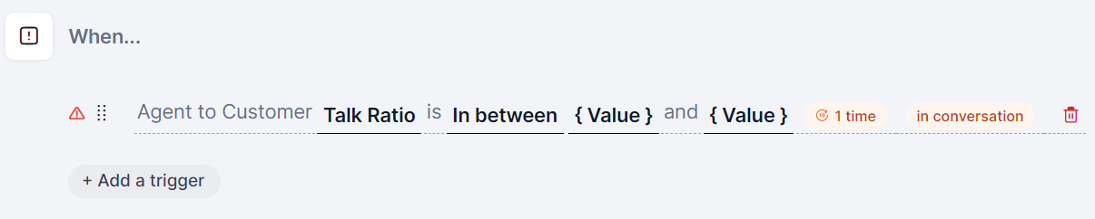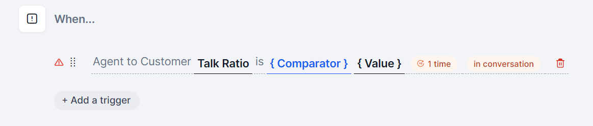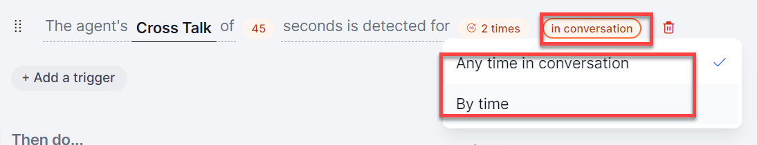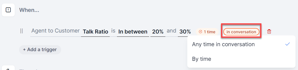 Click +Add a trigger under When… to add a trigger condition for the rule. For more information, refer to the Agent Coaching Rule Triggers When... section.