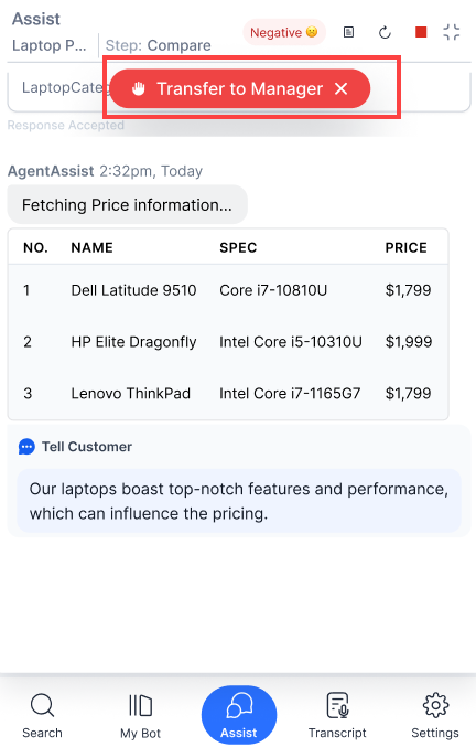 You can configure triggers—such as specific utterances and speech patterns—for Agent AI to provide real-time coaching, including on-screen hints, nudges, or manager notifications. You can track triggered utterances, review their frequency over time, and assess how well agents follow recommended actions. You can also analyze speech patterns—such as cross talk, dead air, and speaking speed—to help agents improve communication.