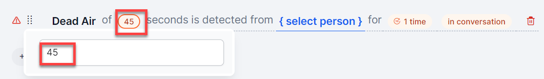 | Talk Ratio | Agent to customer talk ratio – proportion of speaking time by an agent compared to a customer. By default, it can be identified only once. Here is a list of scenarios for different talk ratio ranges: