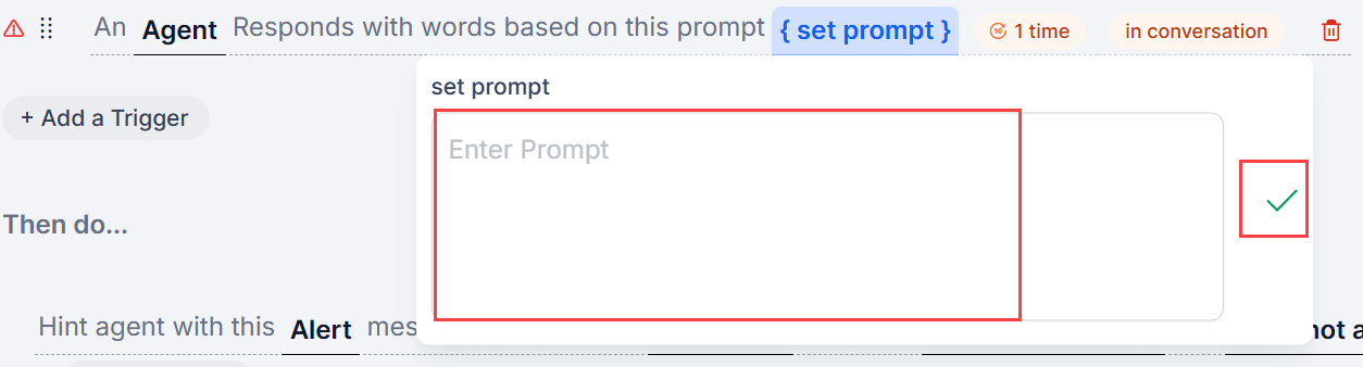 Click {set prompt} to enter a prompt to match the user’s (customer or agent) response in the Enter Prompt box.