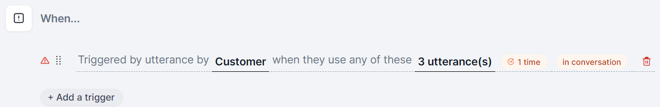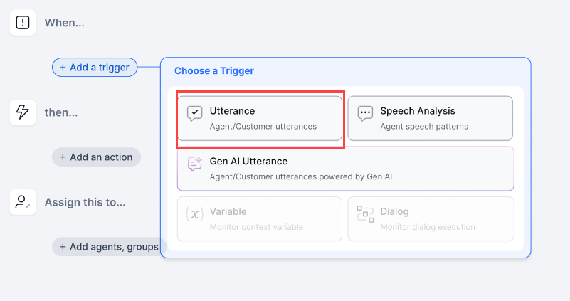 - Select Gen AI Utterances after clicking When… > +Add a Trigger.
