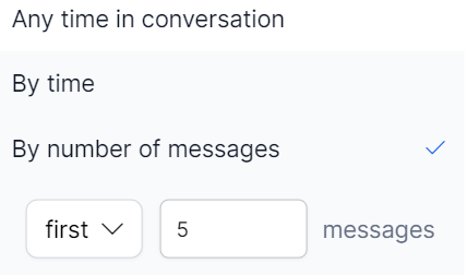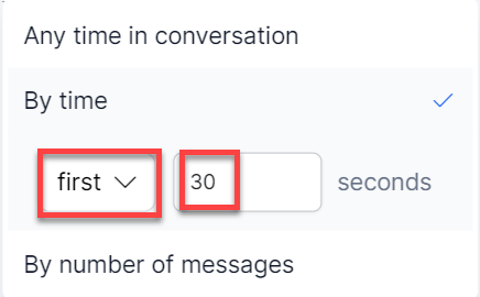 Utterance: Choosing this option sends an acknowledgment that the agent will take further action within a specified time frame during a session. An example would be when you ask the agent to offer a discount to the customer, and the agent acknowledges that they will perform this action within the next few messages, a few minutes, or anytime during the session. The following screenshot is displayed when this option is selected: