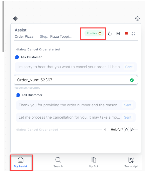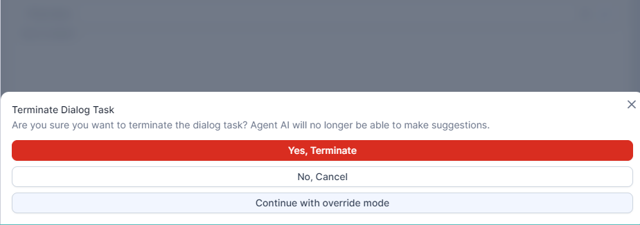- On the Assist/My AI Agent (Bot) tab, next to the automation step, click Terminate. A confirmation pop-up message appears.