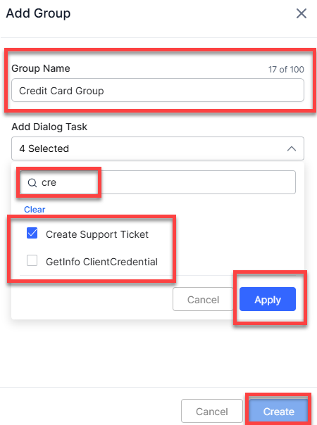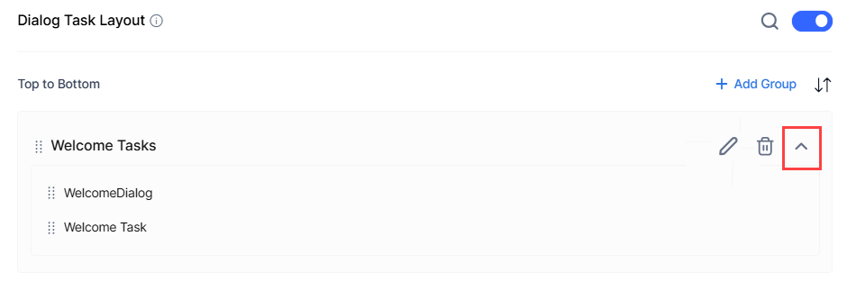 - Click + Add Group at the top-right corner of the Dialog Task Layout section.