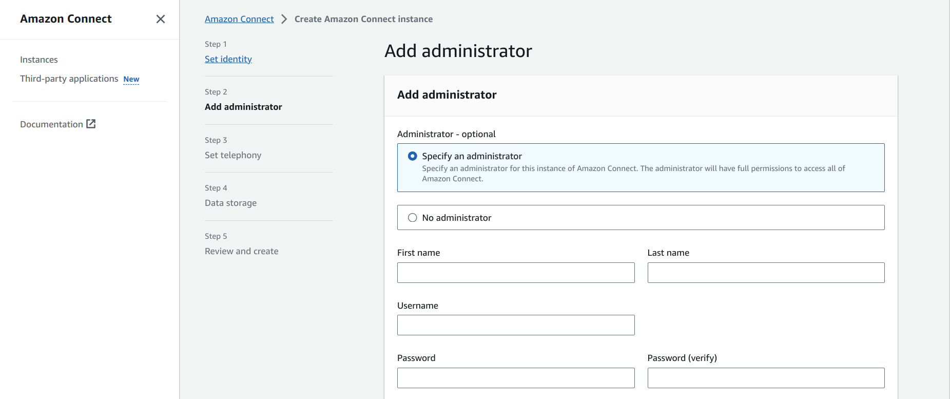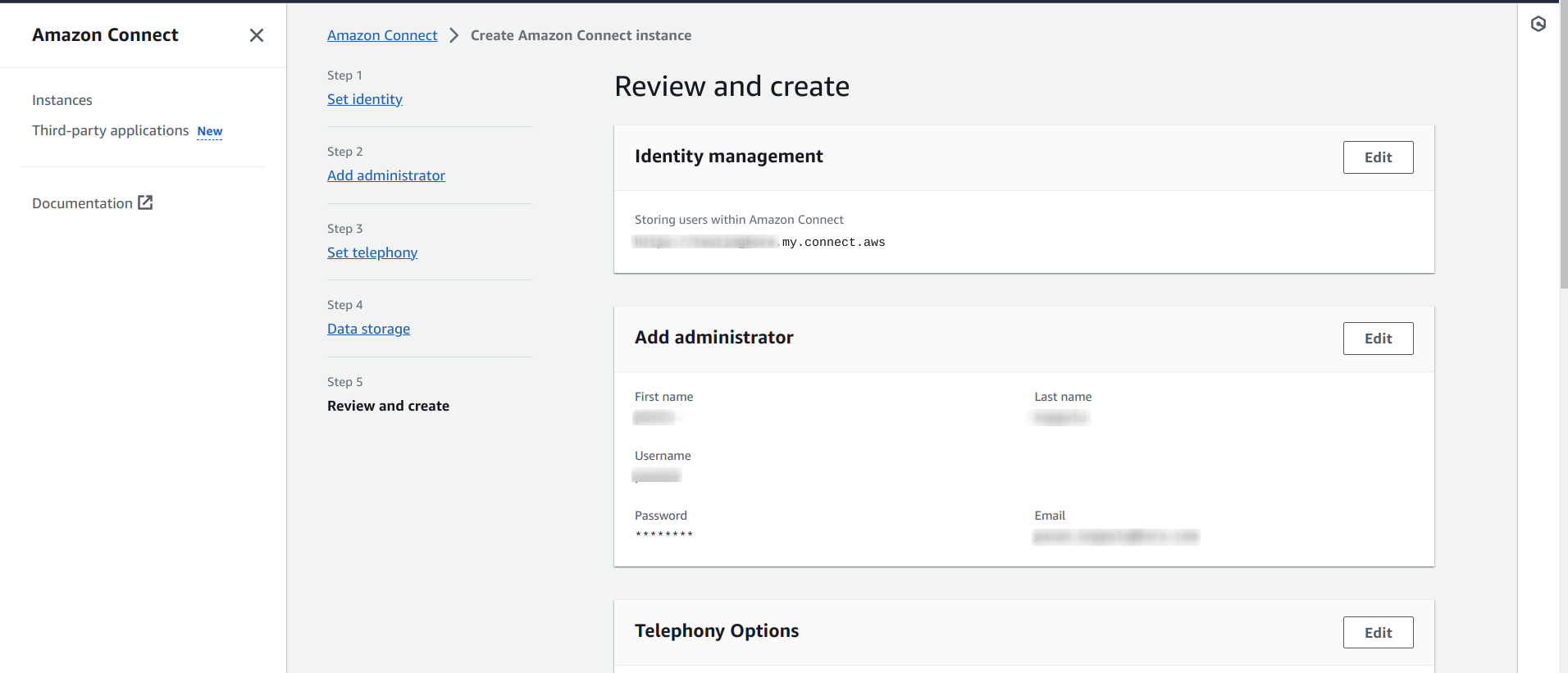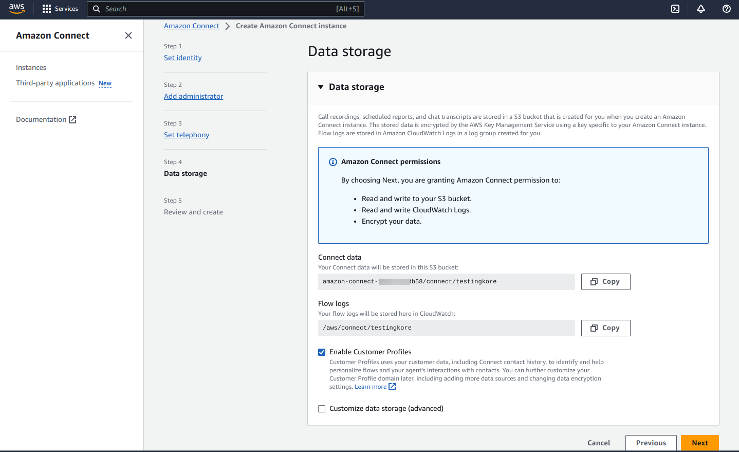 This step creates an Amazon Connect host URL: https://<instance-name>.my.connect.aws.
