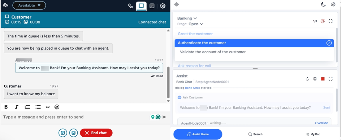 The following screenshot shows Amazon Connect integrated with Agent AI: