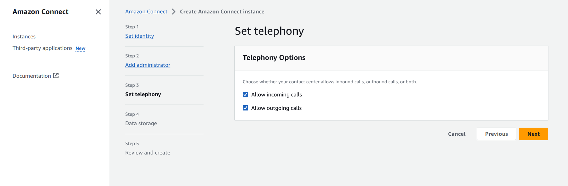 Set up an Amazon Connect instance¶