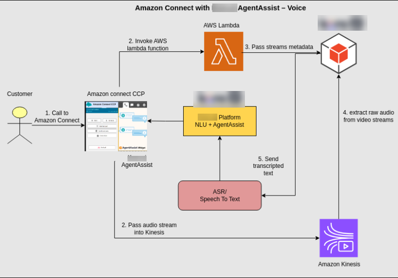 This document describes the integration process of Amazon Connect with Agent AI—Voice, using the AWS CCP Integration approach. This integration enables Amazon Connect to receive voice calls while Agent AI provides real-time support to agents. Audio streams from both the user and agent are captured and processed using Amazon Kinesis Streams. AWS Lambda functions manage transcription and token generation for seamless interaction. Agent AI provides AI-powered assistance, including Agentic Copilot, Next Best Action, Agent Coaching, Agent Playbook, sentiment analysis, EOC Summary, and more throughout the conversation.