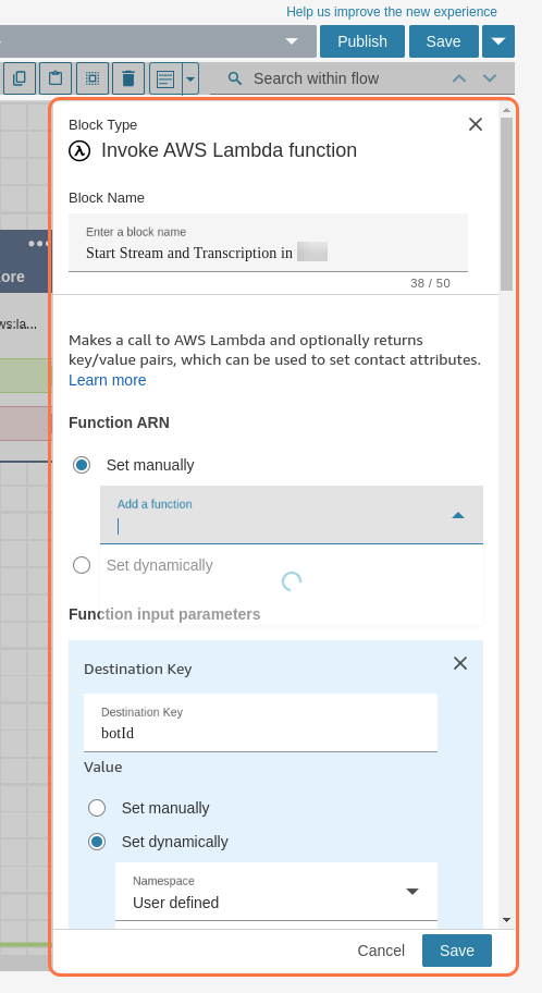 - For Transfer to Flow, select a flow you want to move the user to. For example, save this KVSQueueFlow.json in a file, import this flow to Flows, and add Queue details for routing.