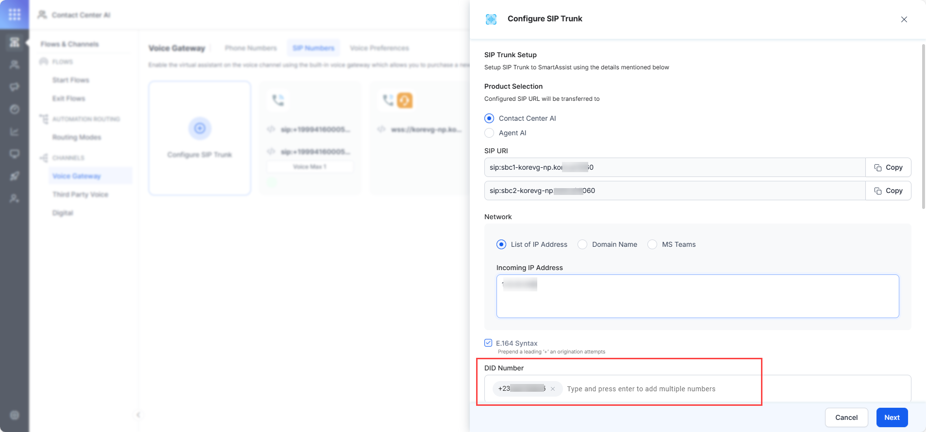 Attach to Start Flow: Once the configuration is complete, attach this number to the relevant Experience Flow within Kore.