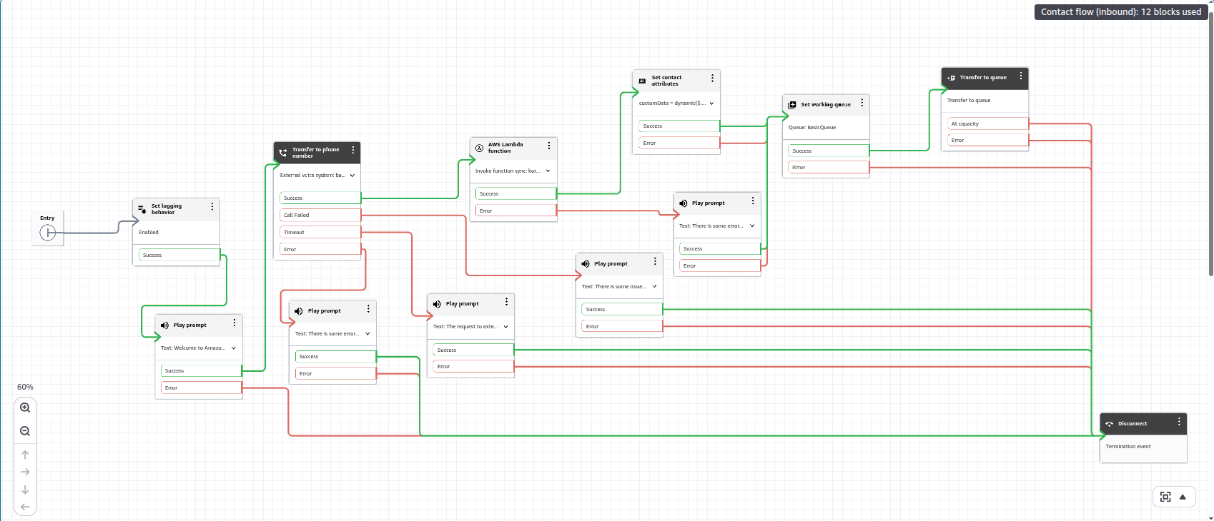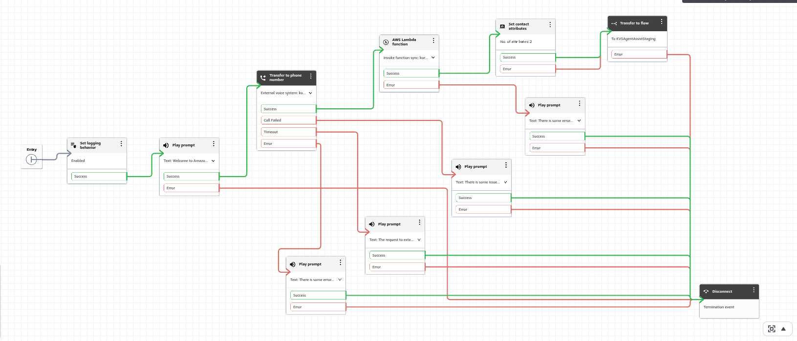 The final screenshot of the contact flow appears as shown below: