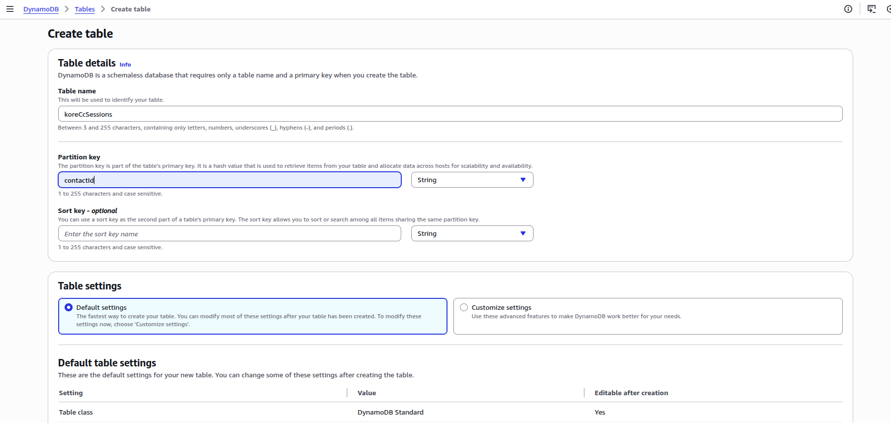 - Create a DynamoDB table with contactId (Amazon Connect Contact Id) as a partition key.