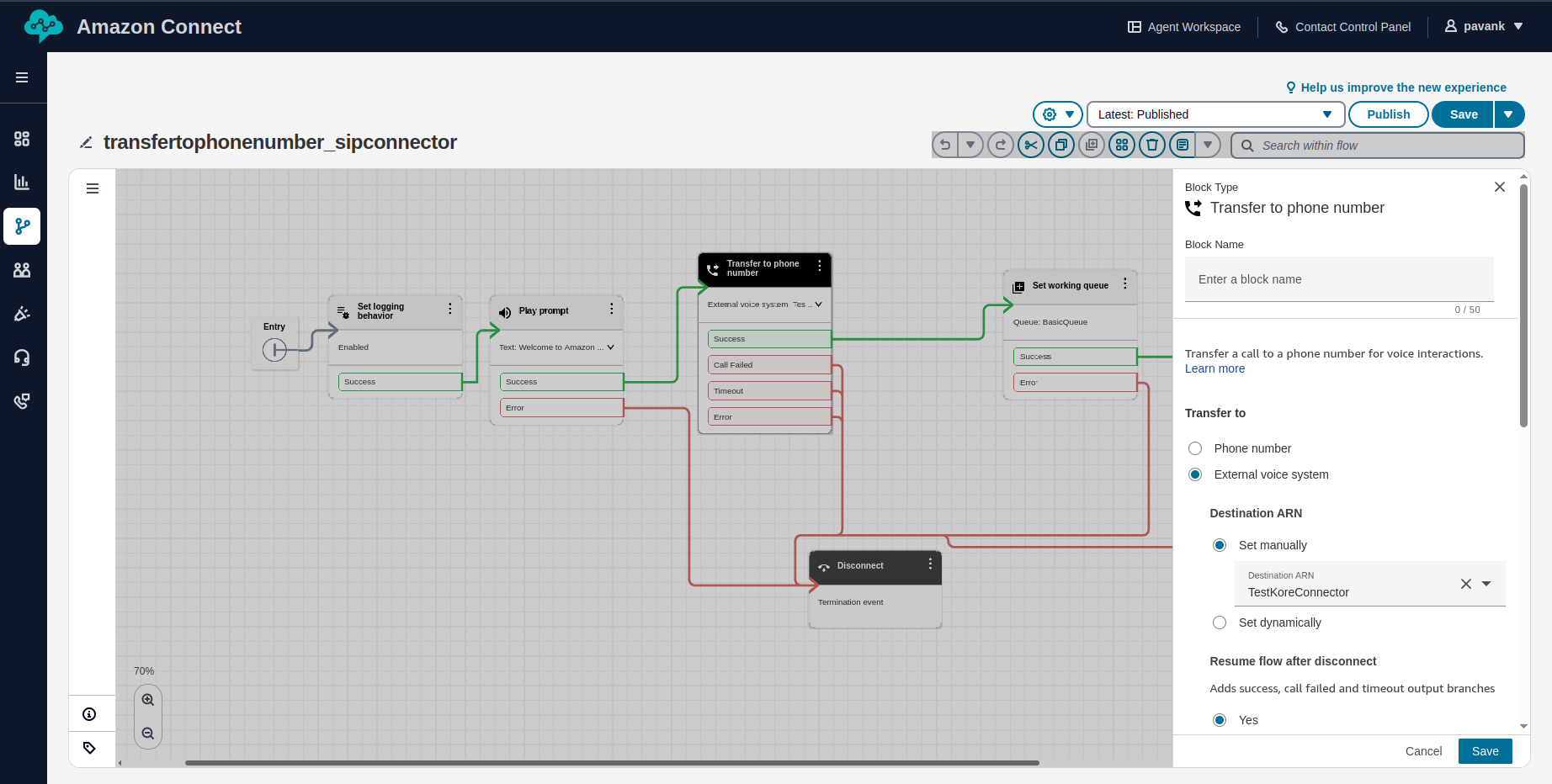 The next step involves modifying your Amazon Connect flow to utilize the newly created external voice connector.
