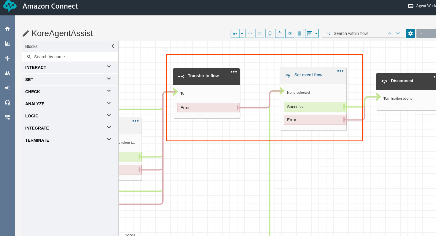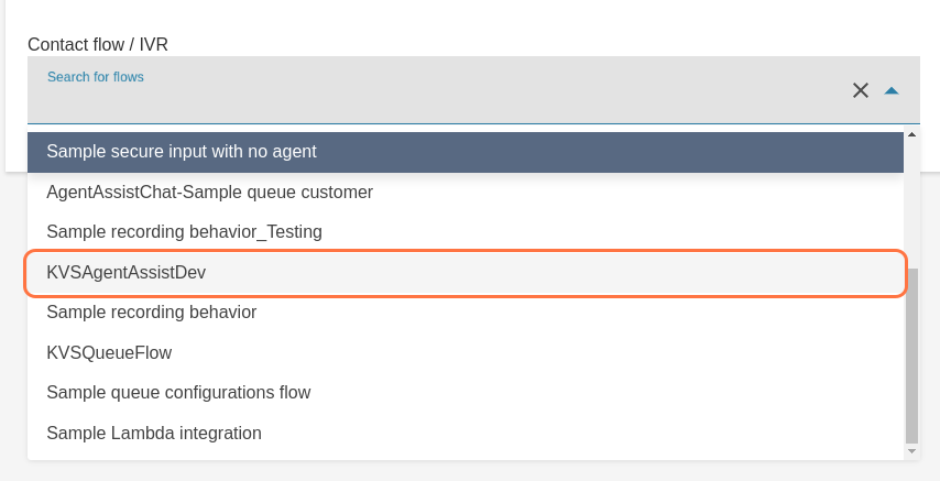 - For Transfer to Flow, select a flow you want to move the user to. For example, save the following JSON in a file, import this flow to Flows, and add Queue details for routing: KVSQueueFlow.json.