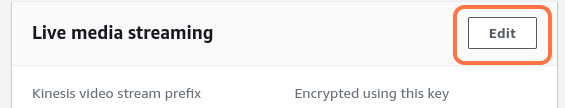 Click Edit next to Live media streaming. Here, you must create instances of Kinesis Video Streams.