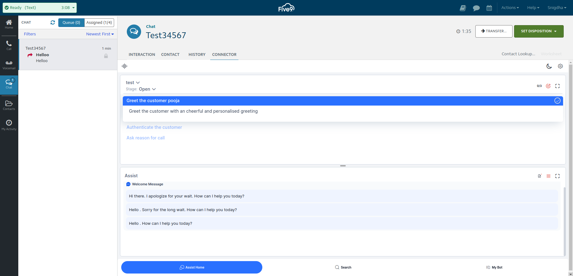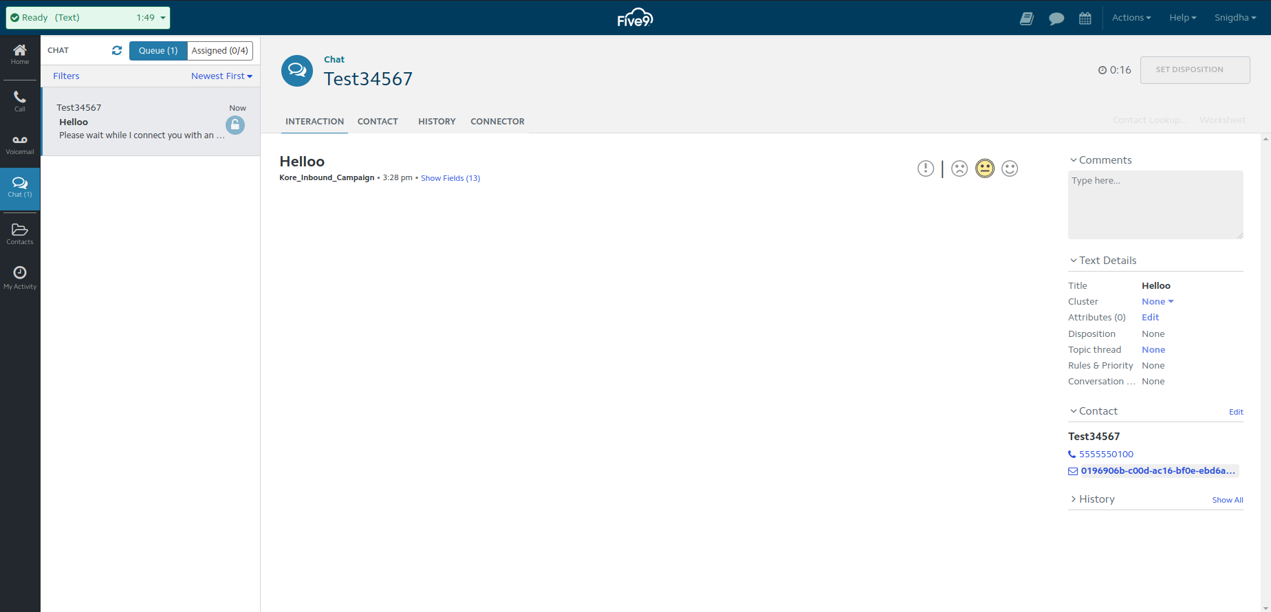 Five9 Account Setup to get Incoming Chat Requests¶