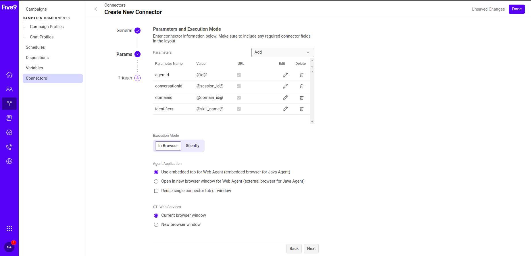 - The URL should be {[Agent AI]}/integrations/five9/