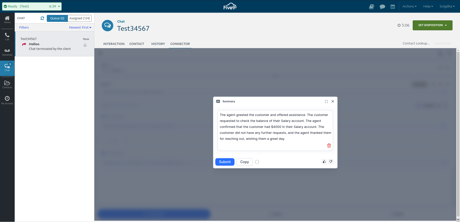 Agent AI Chat Integration with Five9¶