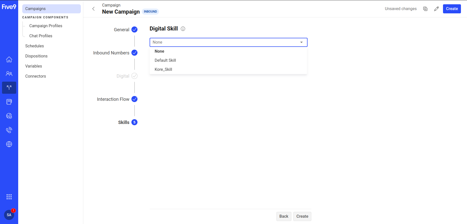 Click Digital Skill, and either select the skill created in the previous step or the Default Skill.