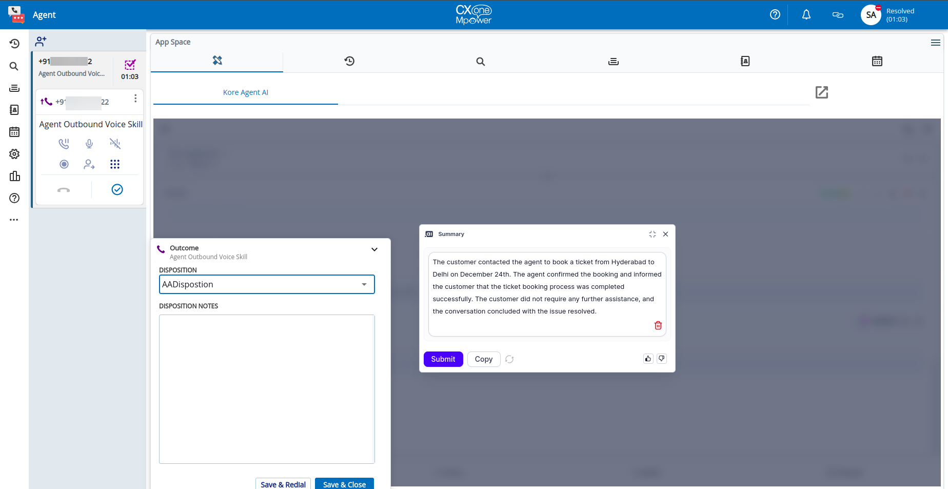 Agent AI Integration with NICE CXone Agent Desktop for Outbound Calls¶