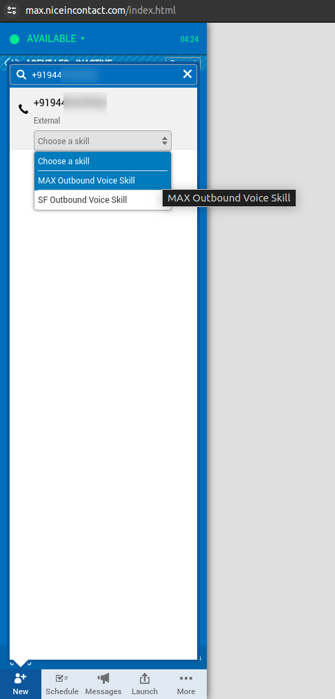 Enter the number in the search bar and click on Call and select the outbound skill created in the previous step.