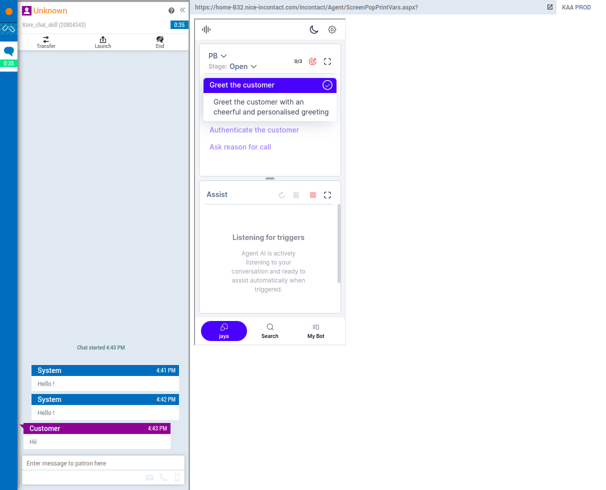 This section explains the configuration steps needed to integrate Kore Agent AI with NICE MAX Desktop.