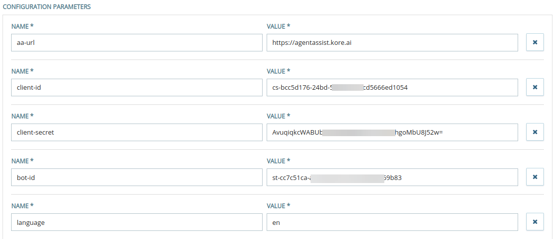 - Kore.ai App credentials such as Agent AI Widget URL, Bot ID, Client ID, Client Secret, Account ID and SIP URI. Read Voice Gateway and Chat for a walkthrough.