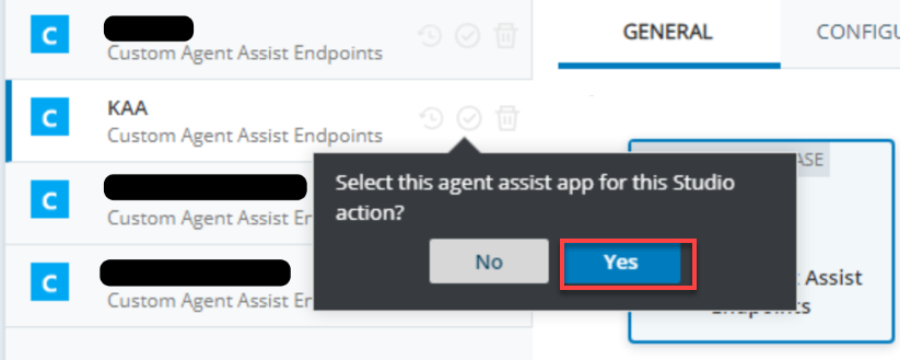 - Click the Chat Endpoint you want to attach with AgentAssist. For voice, click the number you want to attach with AgentAssist.