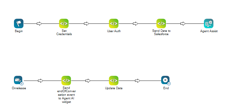 Custom Data configured in the NICE Studio Script will be passed to the Agent AI widget only if the widget is embedded in a separate page that opens after the customer accepts the call. This is because the NICE Studio Script is triggered only once the call is accepted. Therefore, Custom Data will not work if the Agent AI widget is embedded within the Salesforce popup page configured in the Softphone layout.