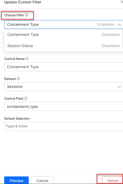 You can perform the following steps to delete the filters of the Custom Dashboard: