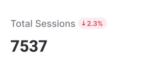 It indicates the total number of uninterrupted interactions between the AI Agents and the end user (customer or agent) over a selected time period on a selected channel. Each session has been set for 15 minutes. If a session lasts beyond 15 minutes but less than 30 minutes, it gets calculated as two sessions. The red superscripted percentage with an arrow symbol indicates a decrease, and the green one indicates an increase in the percentage of number of sessions over a selected time period over a previous session. For example, a number 532 and a 5.2% with a red downwards arrow implies 532 sessions over the interval shown (say, a week) and a 5.2% decrease over the previous week.