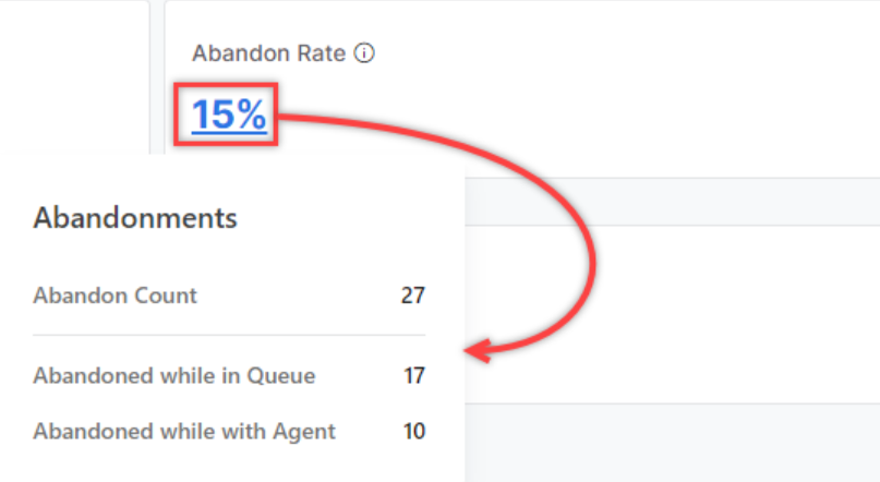Clicking the percentage value on the Abandon Rate widget shows the following information: