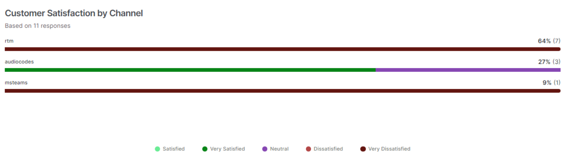 Customer Satisfaction by Channel: This section displays channel-wise customer satisfaction metrics based on survey responses.
