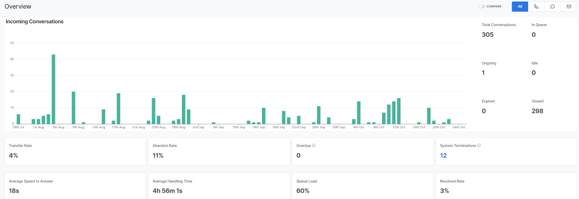 This section displays the metrics for all conversations (phone, chat, and email):