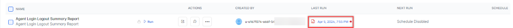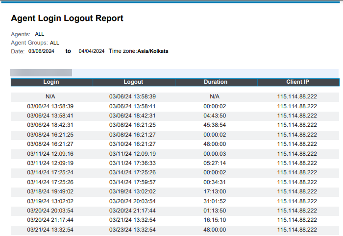 Agent Login Logout Summary Report is a detailed report of an agent’s login and logout events.