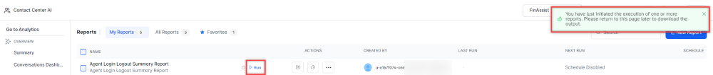 Run On Demand: While creating a new report or editing an existing report, the schedule of the report can be set to run on demand.