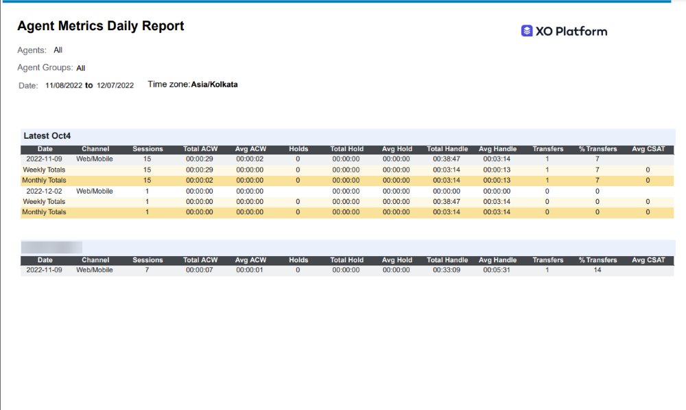 The Agent Metrics Daily Report is a daily summary of agent performance metrics, by channel.