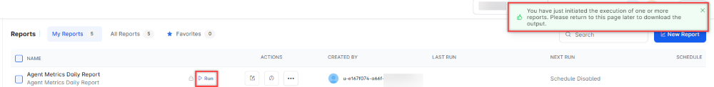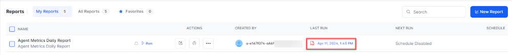 The Agent Metrics Daily Report is generated and is available for download.