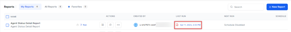The red dot beside the report indicates that it was generated within the last 24 hours. You can download, save, and view the report in PDF format.